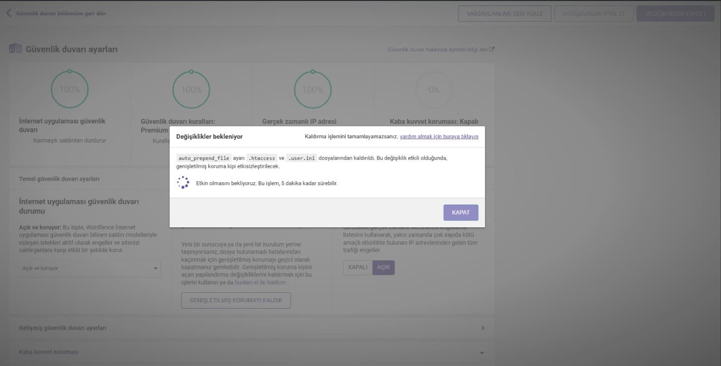 - Varsa özel güvenlik eklentilerini devre dışı bırak